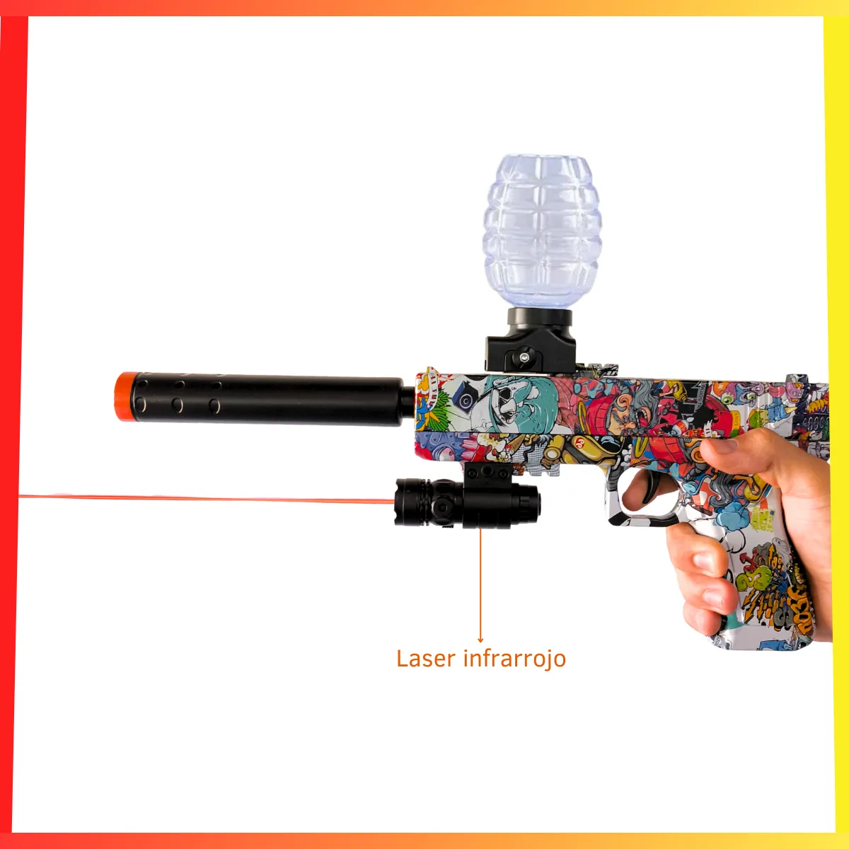 combina un diseño atractivo con un personaje de grafiti que lo hace destacar en cualquier batalla de hidrogel.